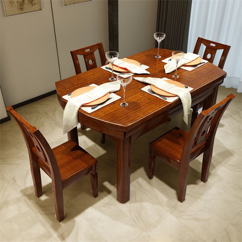 Golden walnut dining table and chair combination Chinese dining room square and round two-purpose retractable folding multi-functional solid wood dining table