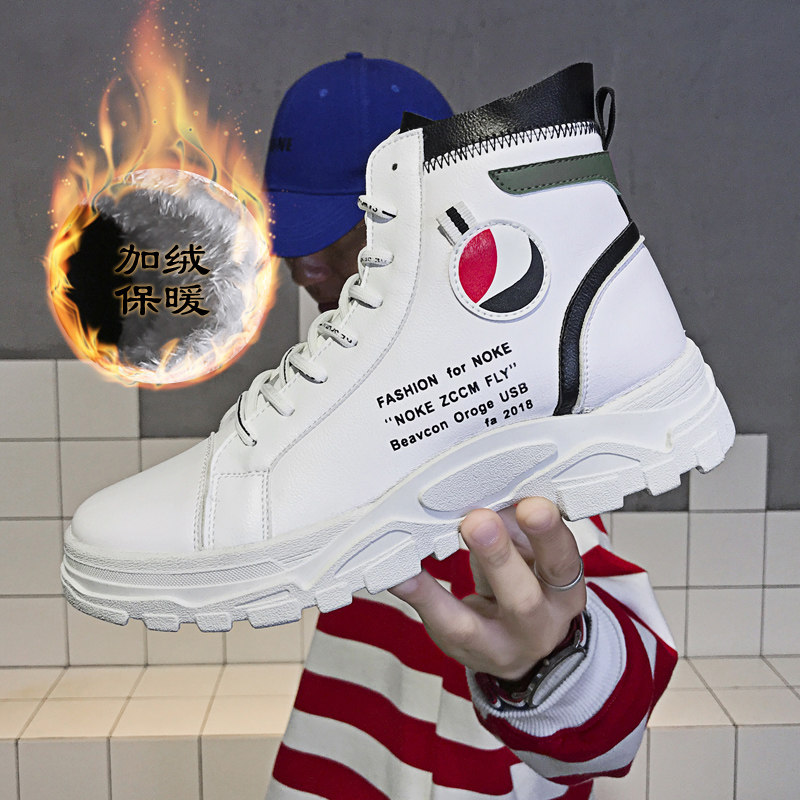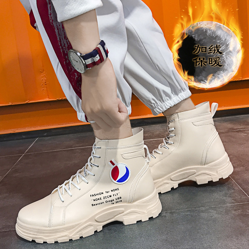 Martin boots men wild 2019 new high shoes men Korean trend men winter plus velvet warm white boots