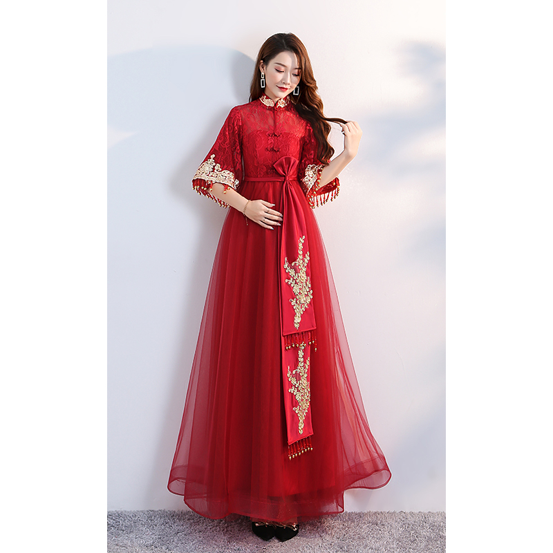 Pregnant women toast bride Chinese long version 2021 new red high waist big size fat mm wedding dress winter