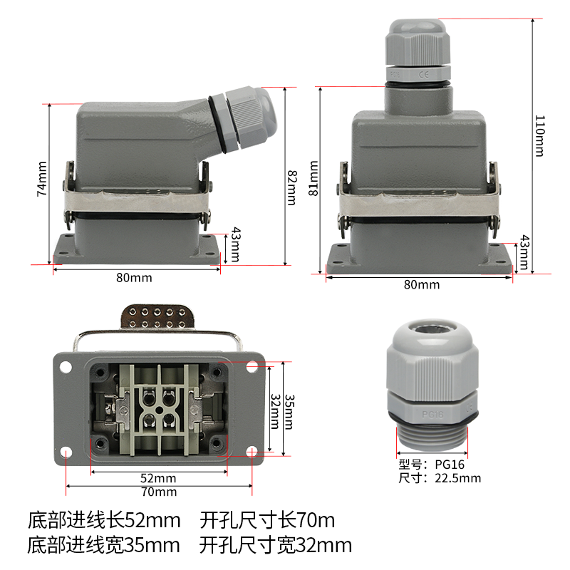 Rectangular heavy-duty connector 4-core industrial waterproof aviation plug socket 16A screw wiring HDC-HE-004