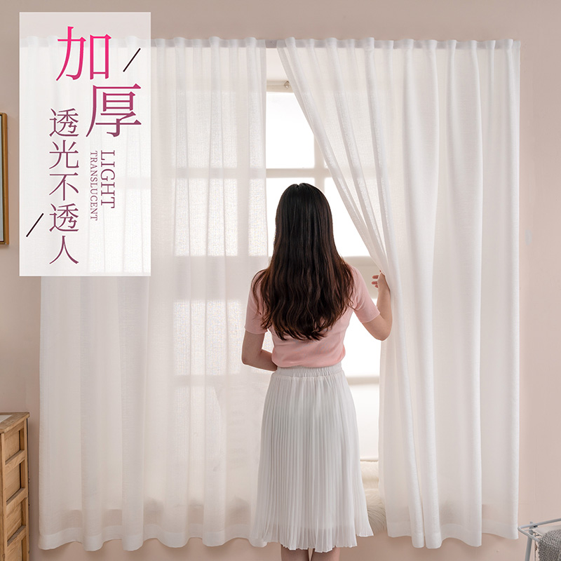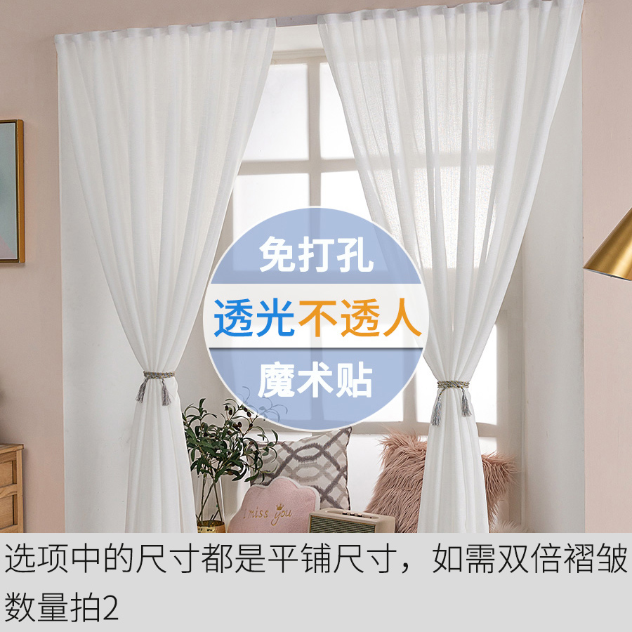 Small sand curtain curtains free of punching installation blackout magic paste type gauze curtain self-adhesive transparent transparent white screen bay window