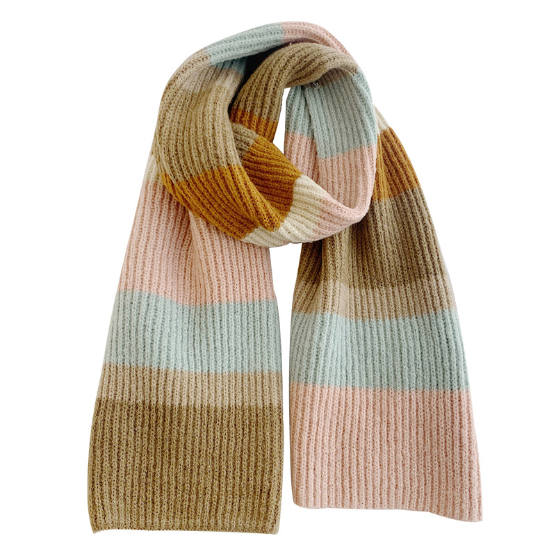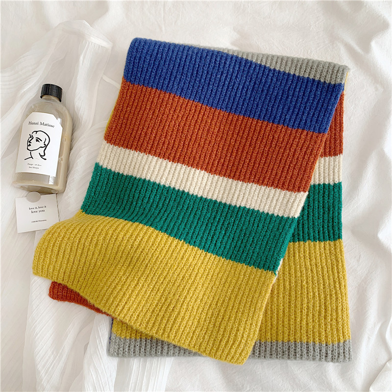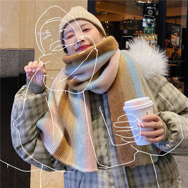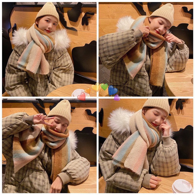 Korean rainbow scarf~ Hyuna wind striped warm scarf winter Japanese retro gradient contrast collar students
