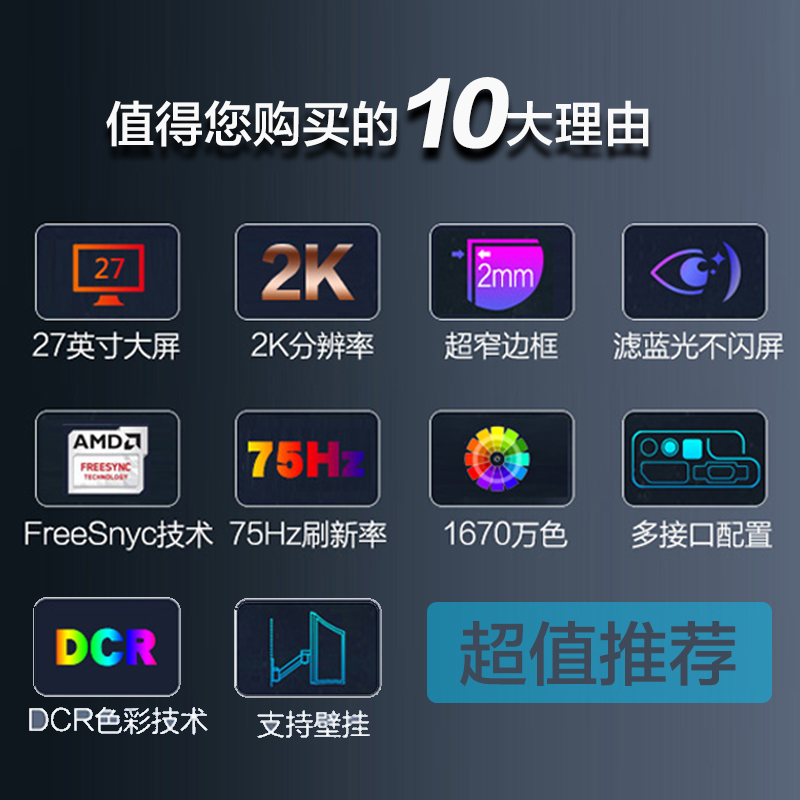 (27 inch) Black 2K Upgrade (2K resolution IPS screen 75Hz ultra-thin narrow side support wall mount) PX27QA2