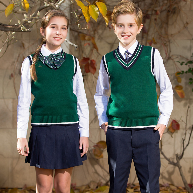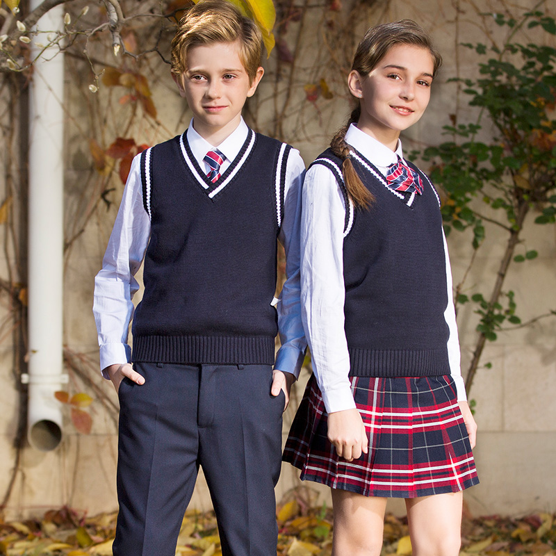 Primary school uniforms suit Inn wind sweater jacket head vest men and women CUHK woolen sweater full cotton knit cardiovert waistcoat