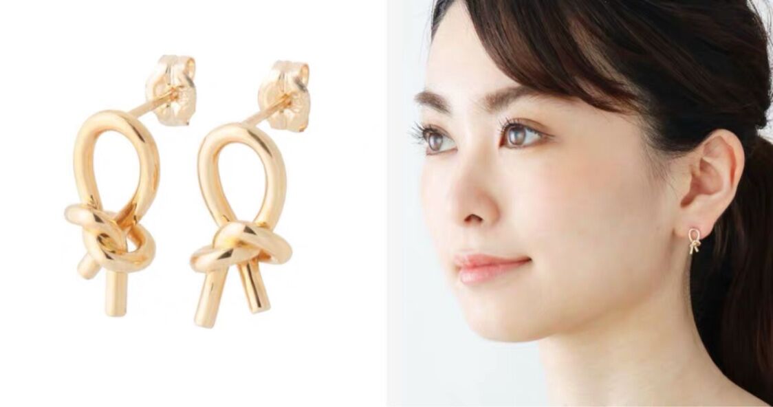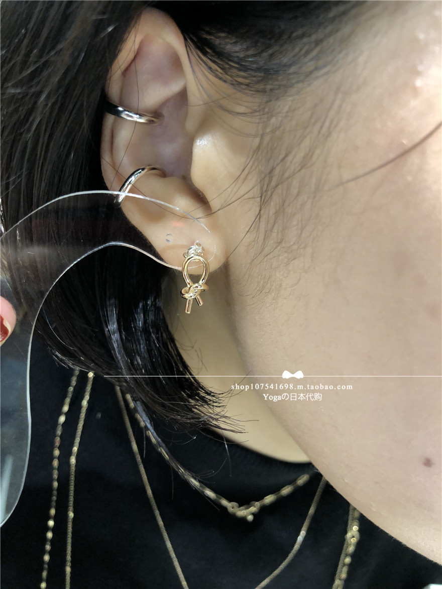Japan Straight Away Cooshnik 10k Delicate cord knot ear pin