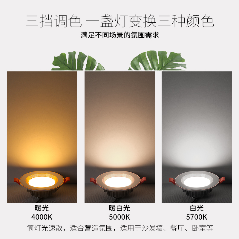 LED cylinder light Living room ceiling ceiling lamp 3w5w Embedded dongle lamp Three-colour light changing barrel light aisle 7w-hole spotlight