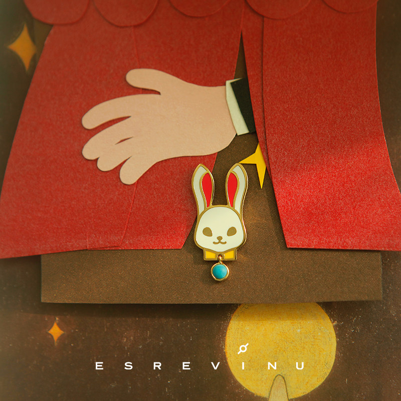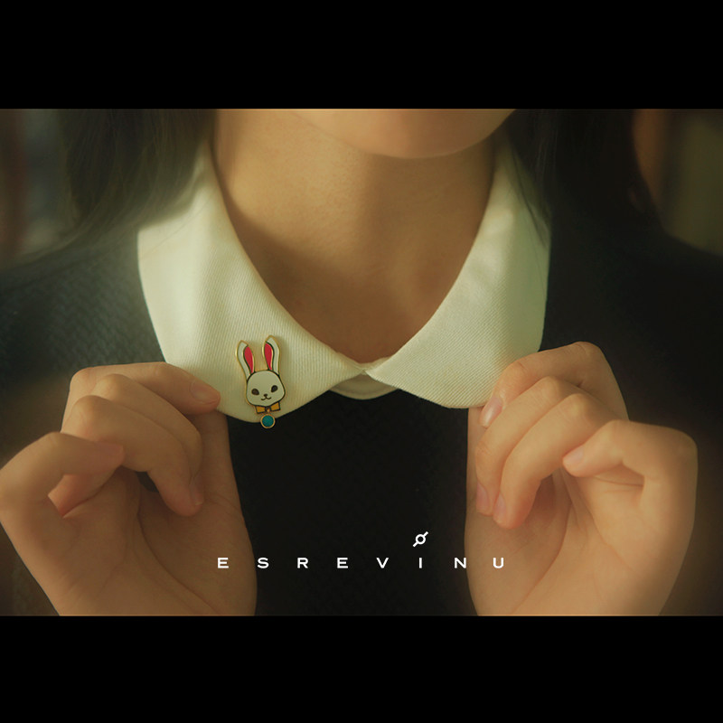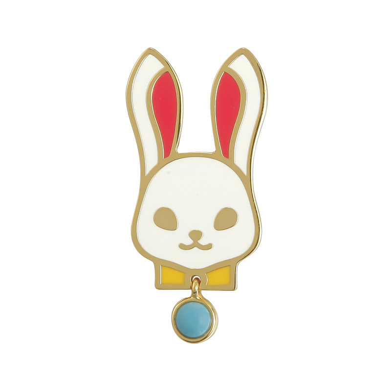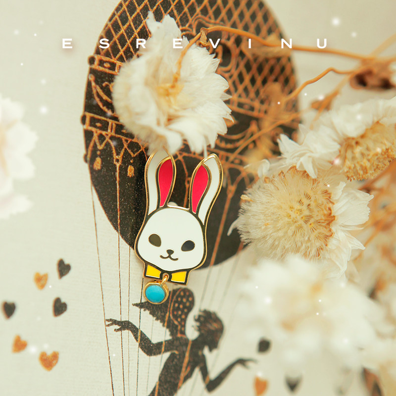 Cosmic Symbol "White Rabbit" Brooch ESREVINU Original Design Enamel Gold Plated Jewelry Cute Gift