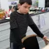 Tree Rock spring and autumn Korean edition Men's and women's striped stitching long-sleeved T-shirt elastic cotton base shirt