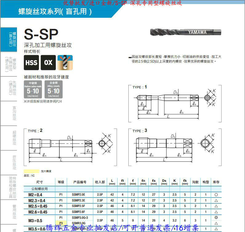 Japan YAMAWA Deep hole special S-SP screw tapping machine with screw M2X0 M2X0 4M2 5M3M6M10-M48 5M3M6M10-M48