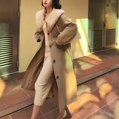 Mao Collar Cotton Cotton Coat Women 2020 winter New Korean version of retro Hepburn coat over the knee long version of windbreaker cotton jacket