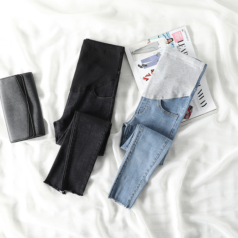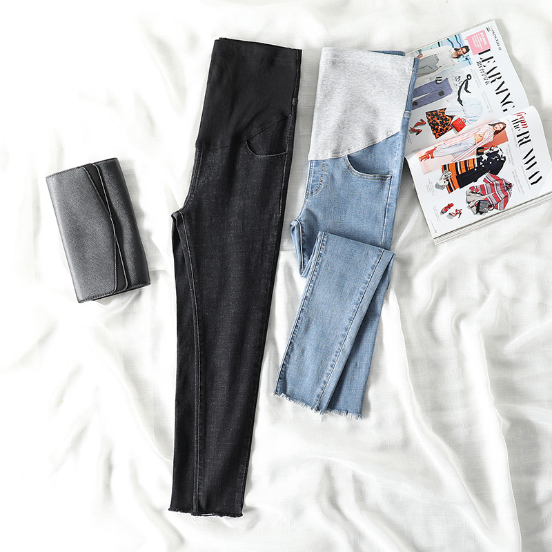 Pregnant women's jeans Spring and Autumn Pregnant Pants Fall Mom wearing small feet nine-minute pants black blue