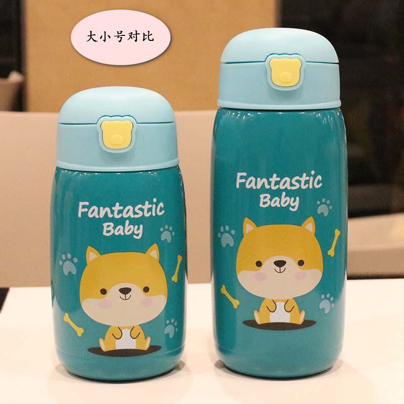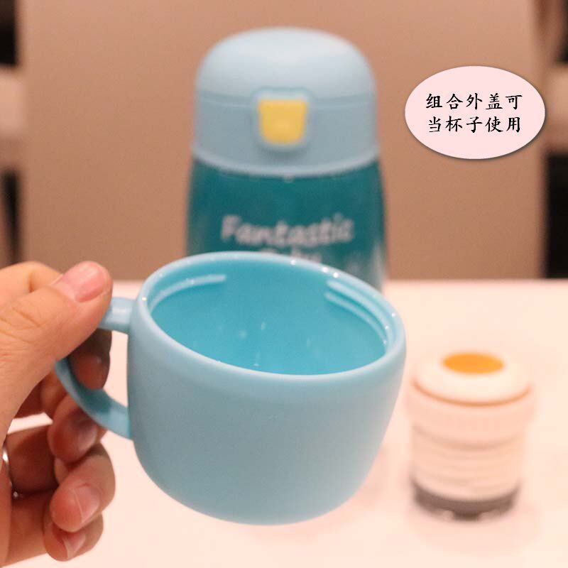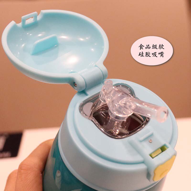 Children's double - cover 304 stainless steel vacuum insulation cup with a straw cup pupil portable leakage proof and cute water cup