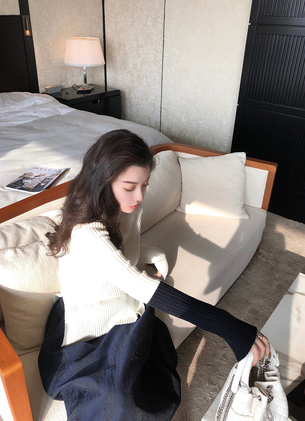 THE HANDLE Color-block pullover sweater women's winter wool bottoming shirt slim-fit inner sweater length