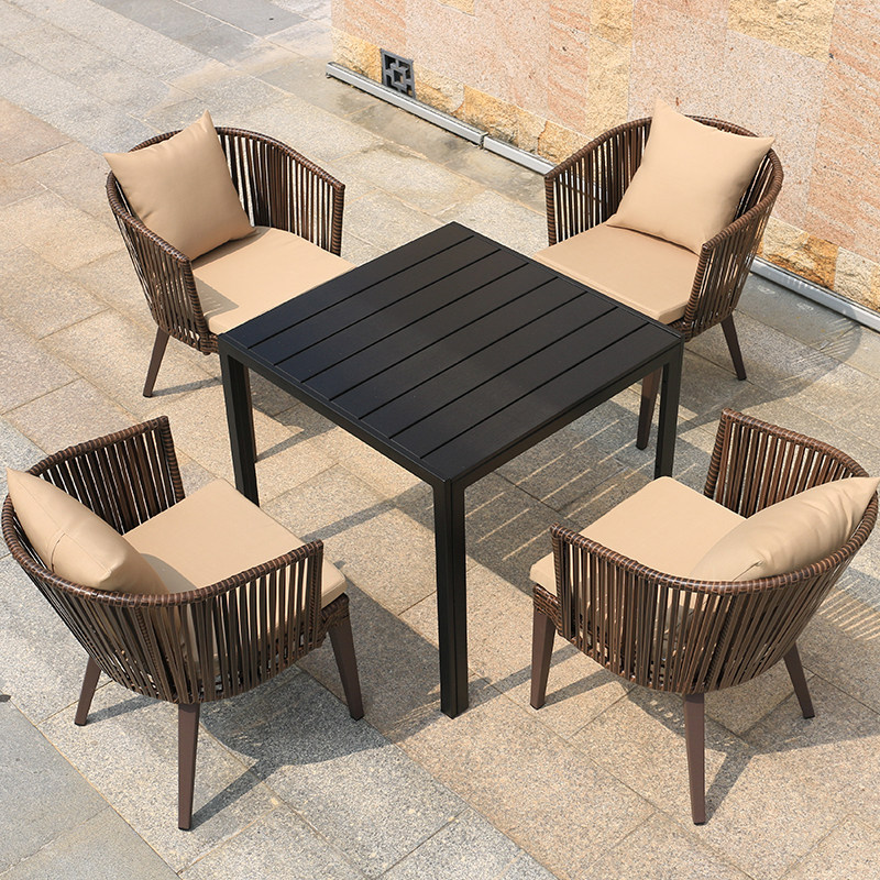 Outdoor table and chairs courtyard sub-balcony leisure open-air terrace garden outdoor wrought iron garden rattan chair three-piece combination