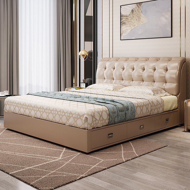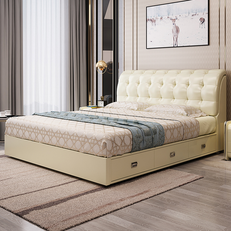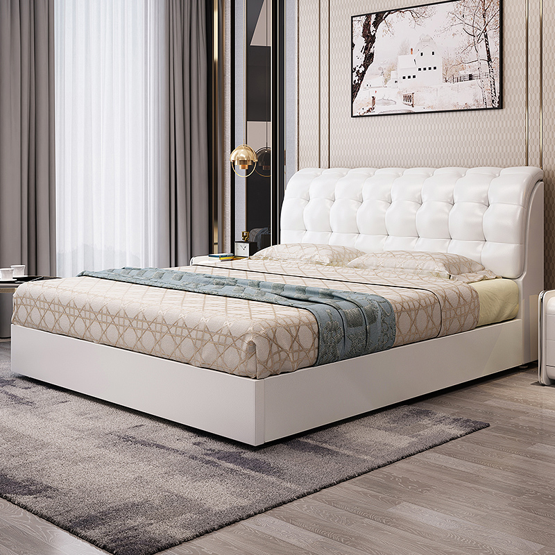 Leather bed master bedroom marriage bed 1 5 meters 1 8 meters software double bed modern minimalist storage bed pneumatic bed leather art bed