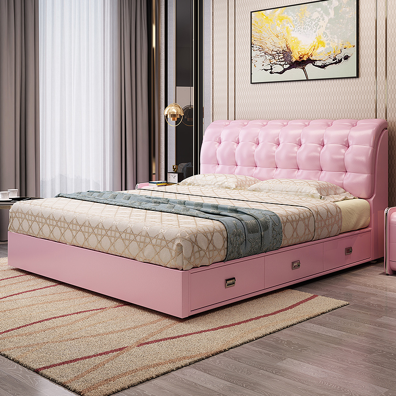 Leather bed, 2 cabinets, 3 drawers, 9D latex and cotton three-proof mattress
