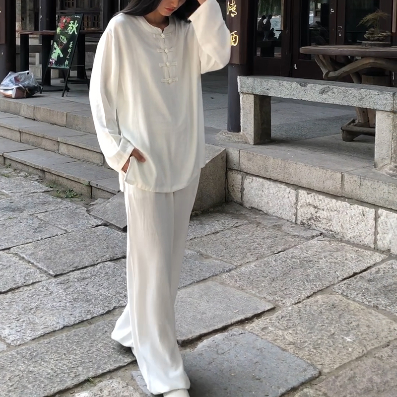 Linen Tai Chi Clothing Women's Spring Autumn Morning Practice Suit Chinese Style Chinese Style Chinese Wind Taijiquan to perform a martial art suit