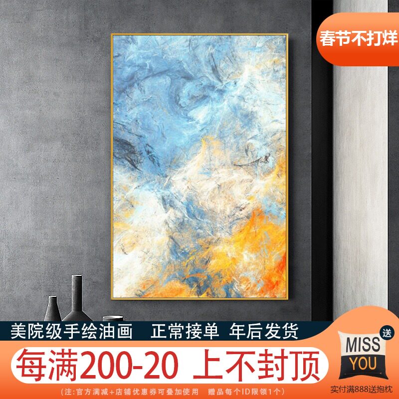 Pure hand-painted abstract porch decorative painting vertical modern simple living room background wall oil painting office art hanging painting