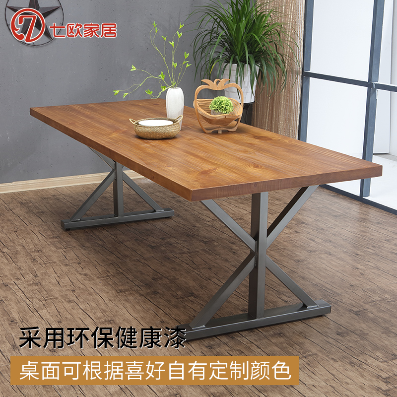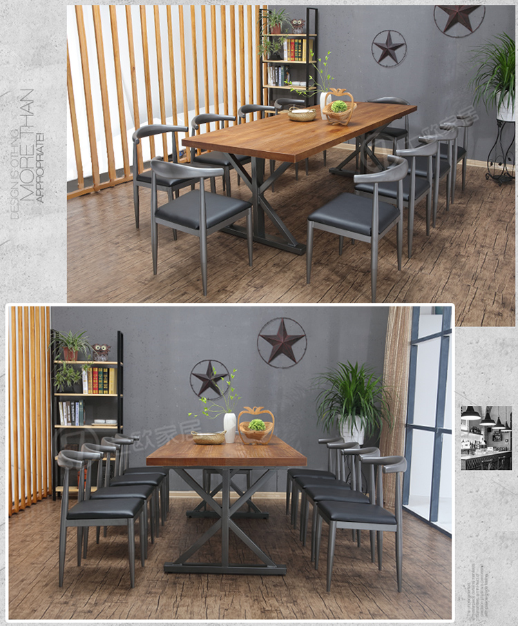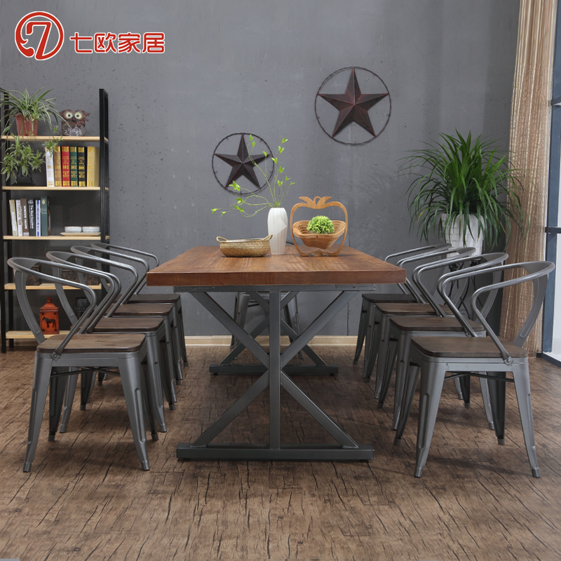 Iron Art Solid Wood Rectangular Table Retro Bar Coffee Hall Tea Restaurant Hotel Canteen Dining Table And Chairs Combine 6 people