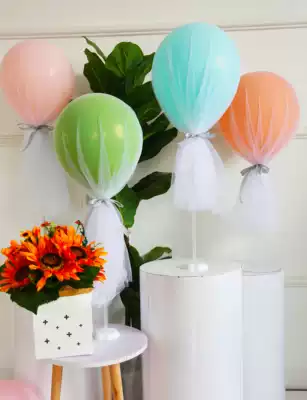 ins net celebrity net yarn balloon table Floating table decoration Birthday party annual meeting decoration Dessert table decoration desktop props