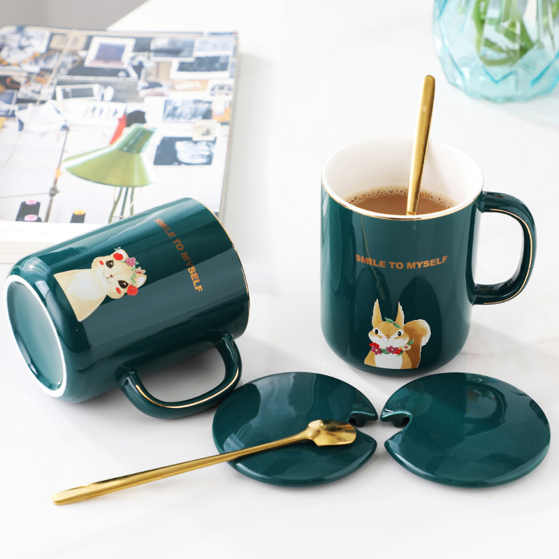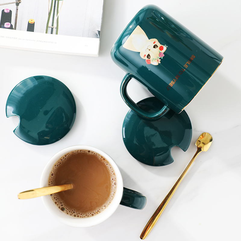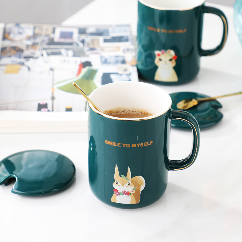 Ceramic mug small luxury coffee cup household water cup with lid spoon student gift simple cute cup gift box