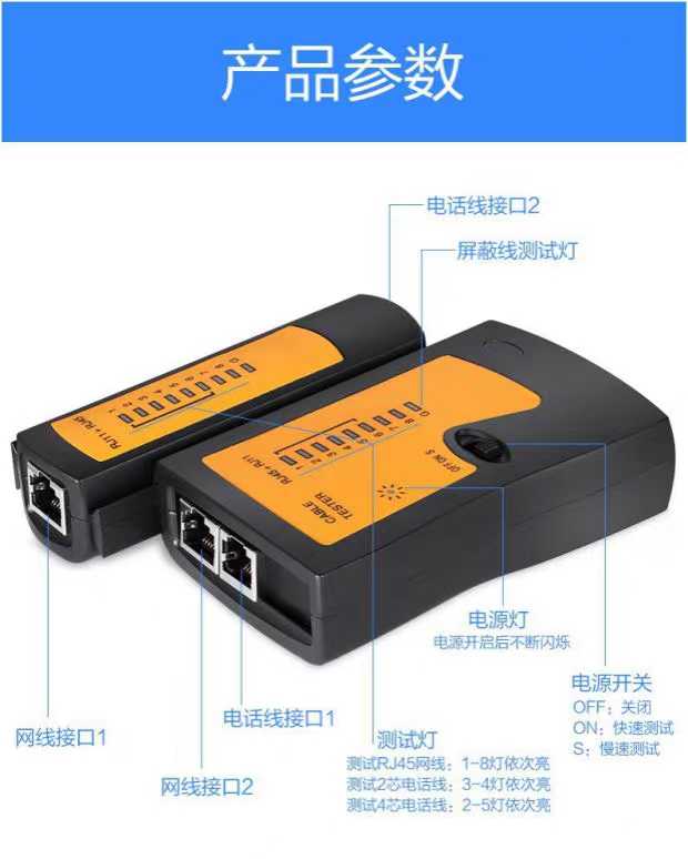 Power black network cable telephone line measuring instrument RJ45 RJ11 telephone network cable test instrument