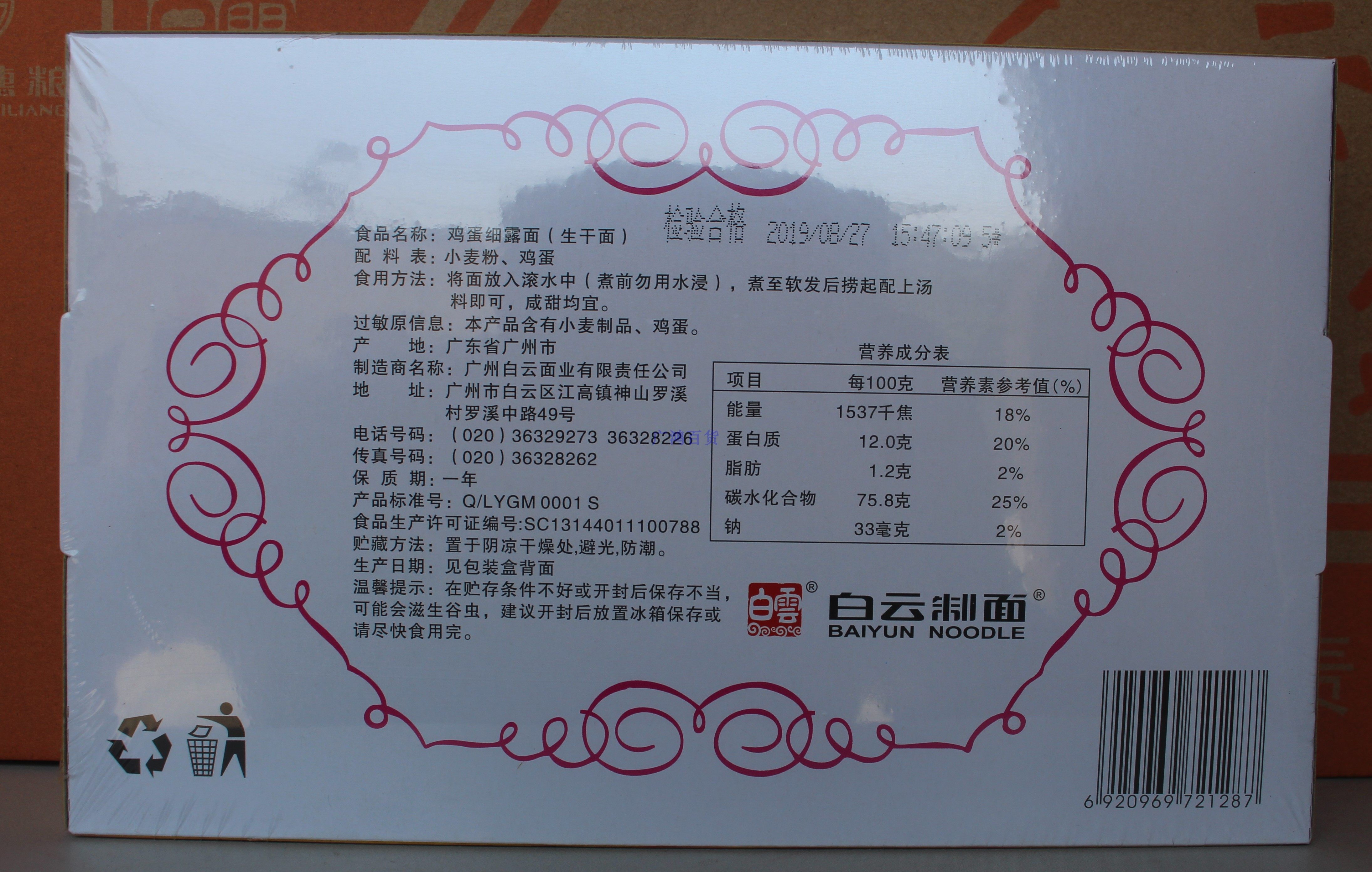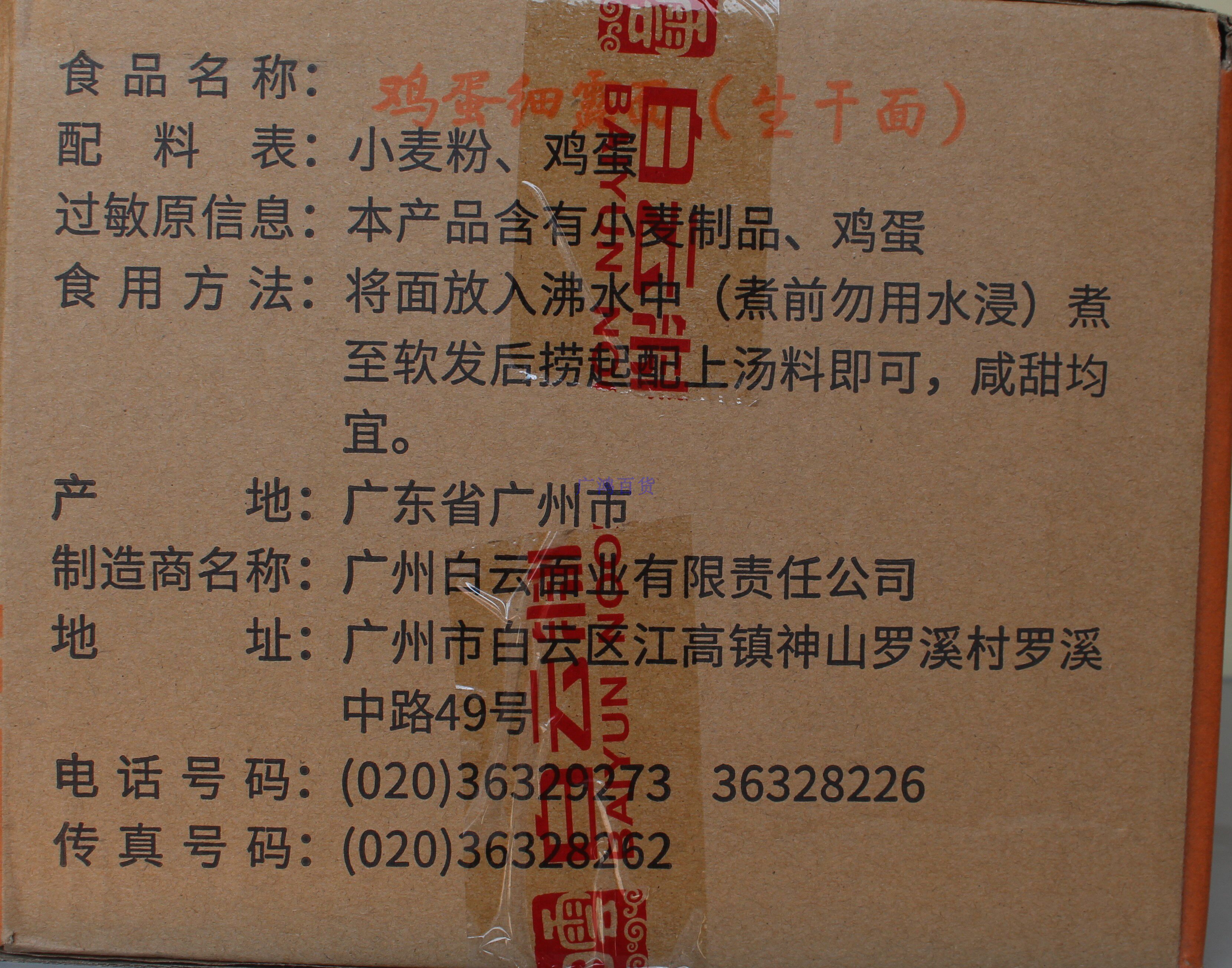 Whole box of children's noodle fine road surface Baiyun brand egg fine surface 300g*12 boxes egg noodle children's noodle