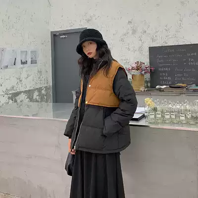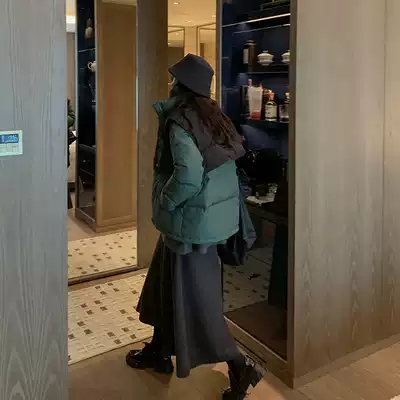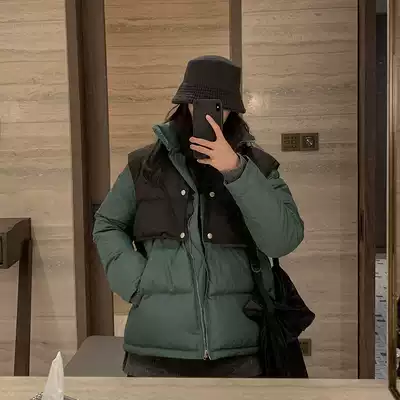 Red people's hall short cotton clothes women's 2021 winter new retro loose temperament casual color matching thick cotton coat jacket