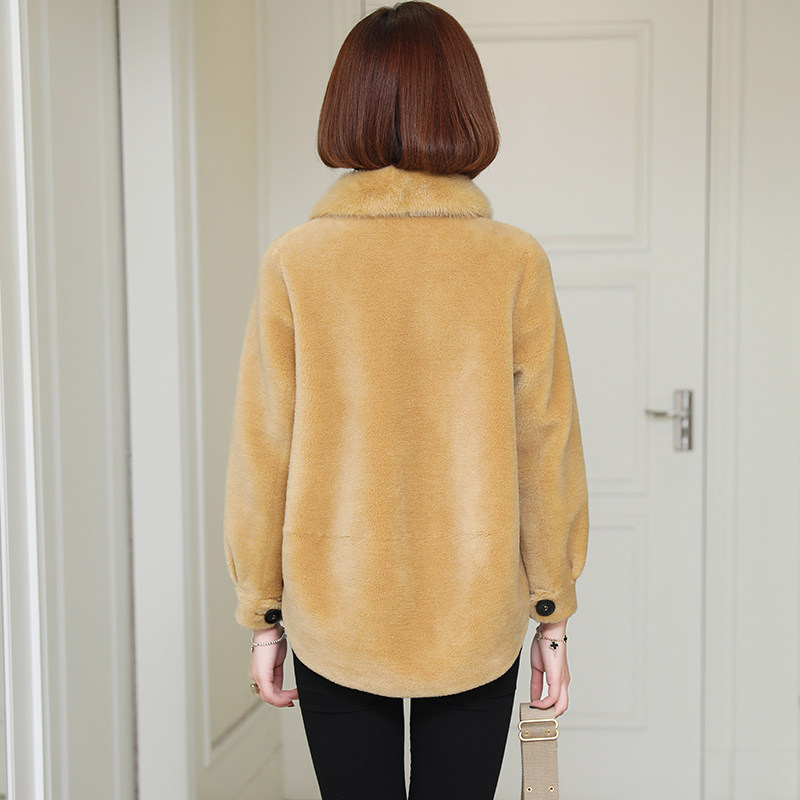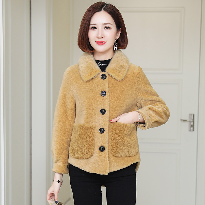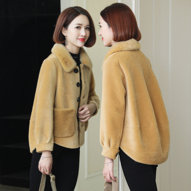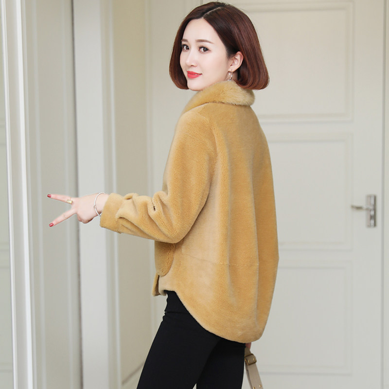 Zqqz sheared wool coat women's short imported mink fur collar 2020 new grain wool fur coat D223