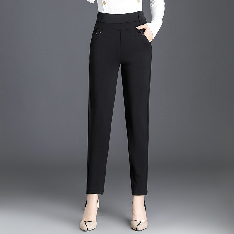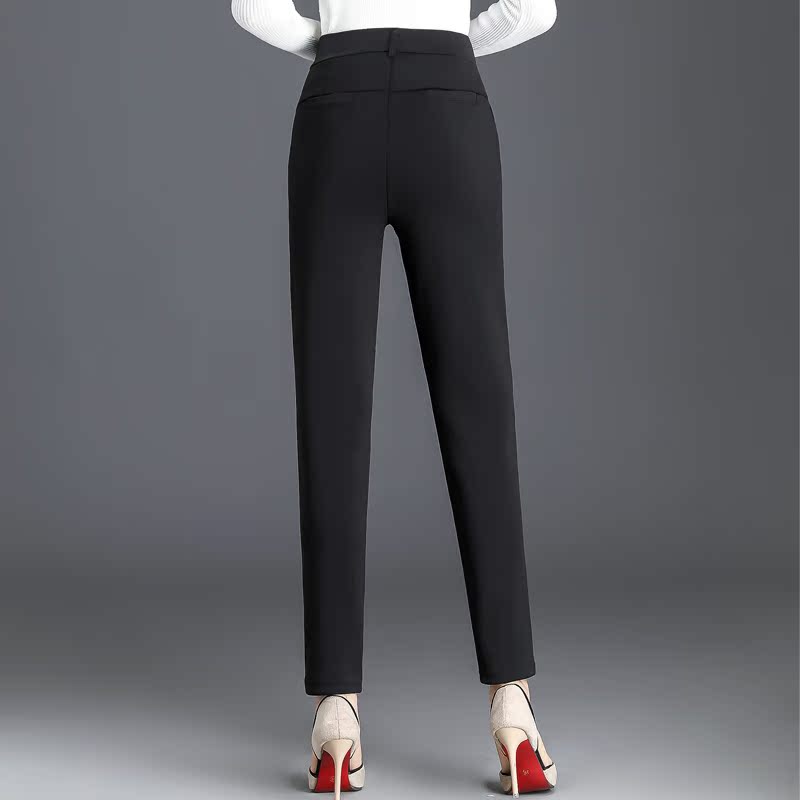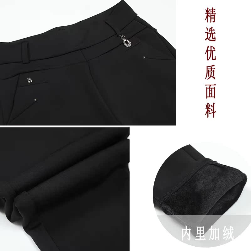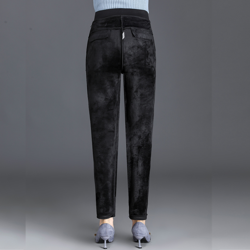 Middle-aged women's pants in autumn and winter plus velvet padded middle-aged and elderly elastic high waist elastic pants mother warm pants wear outside