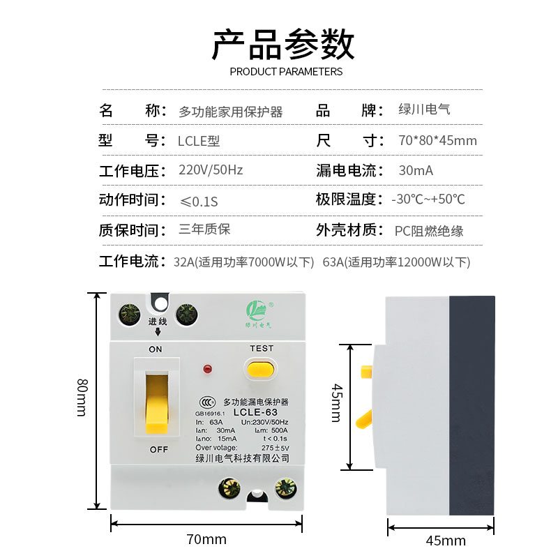 DZL18 household leakage protector switch 32A63A leakage protection main switch leakage circuit breaker with lamp upgrade