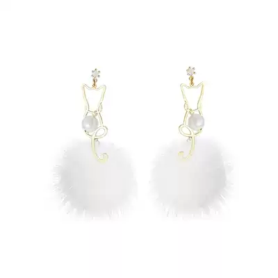 Hair ball earrings s925 silver needle hair ball ear clip earless female mouse hair ball earrings s925 silver needle owl hair ball earrings dark green hair ball earrings s925 silver needle love ink