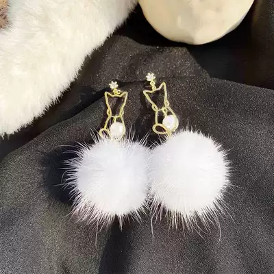 Hairball earrings 2020 New Tide Korean temperament Net red autumn and winter earrings women winter wild winter earrings