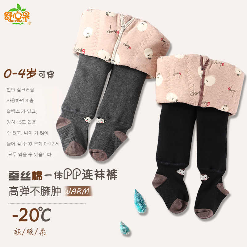 Girl integrated cotton one-piece fit pants baby baby baby large pp clip cotton thickened punch bottom warm pants winter 0-3 years 2