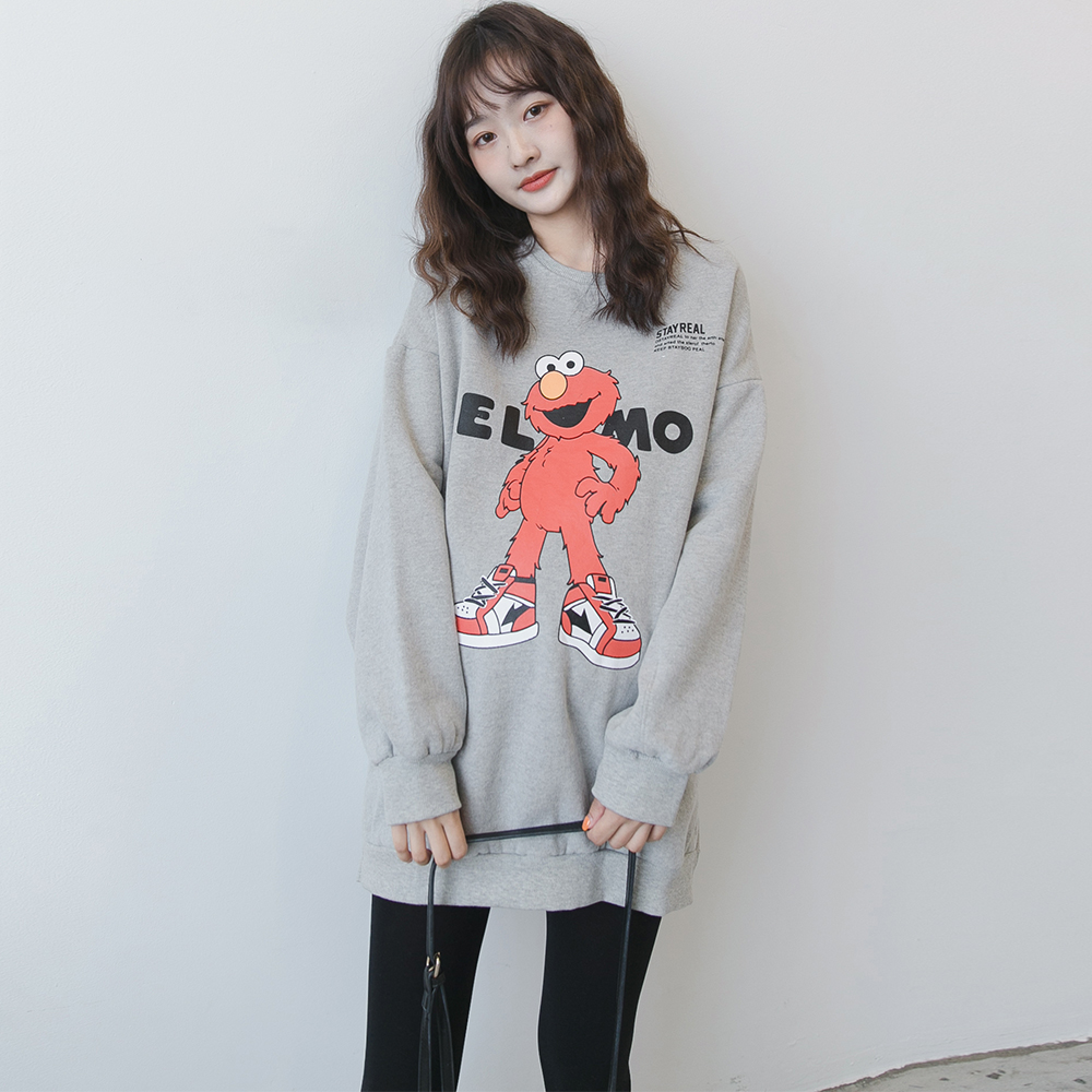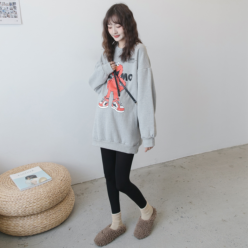 Maternity clothes autumn and winter tops Korean casual cartoon printing thickened loose medium and long version of velvet maternity sweater tide