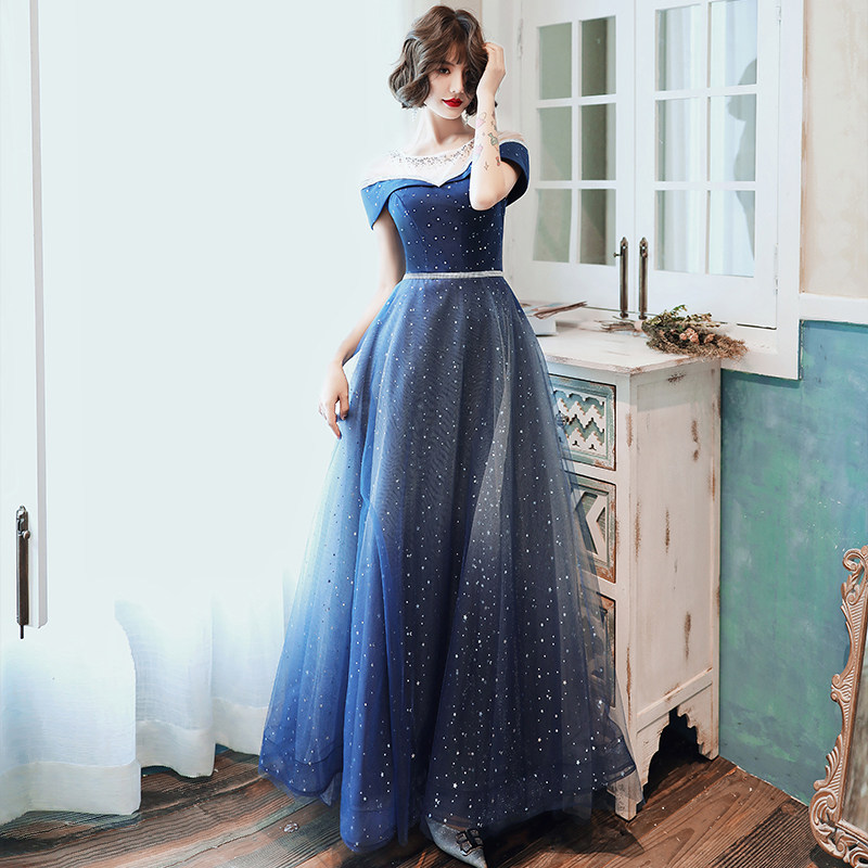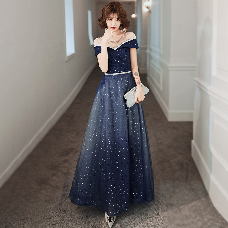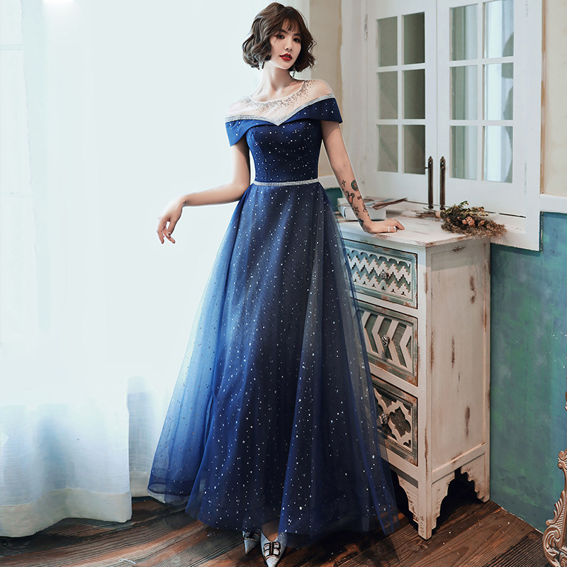 Annual meeting evening dress female 2023 new banquet gas field queen temperament fairy air fantasy starry sky host dress skirt