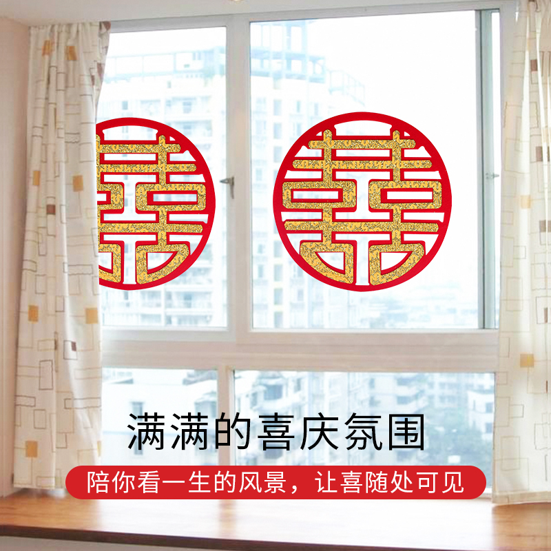 Wedding room decoration wedding ceremony stickers a new wedding arrangement celebration non-woven fabric red window glass door sticker
