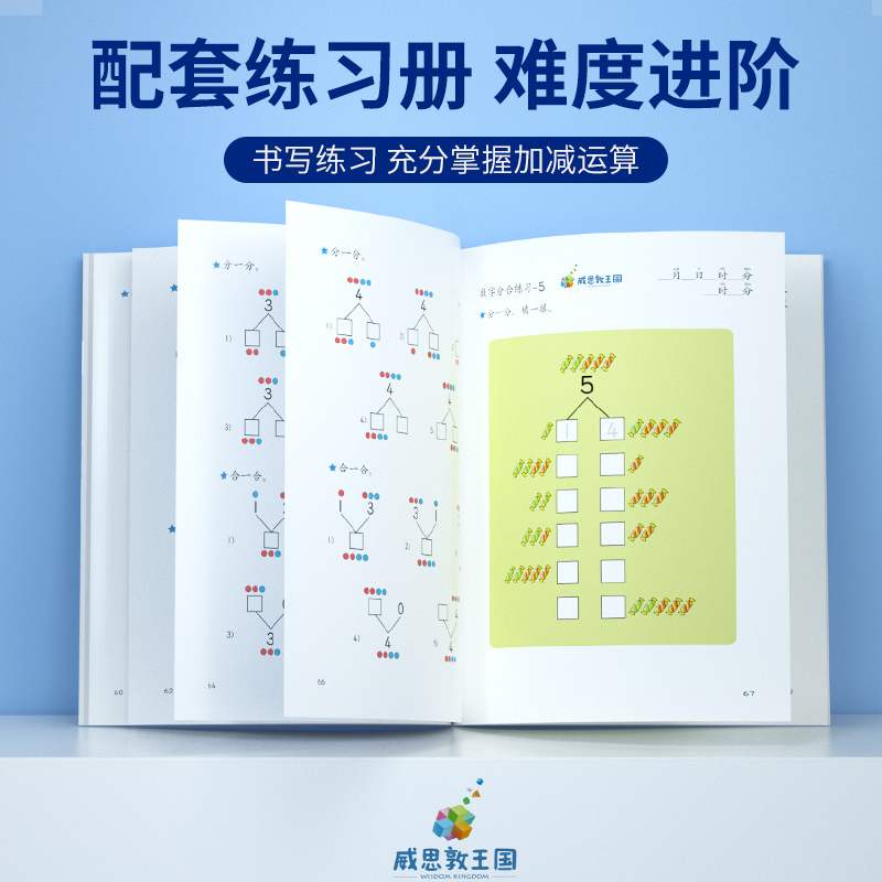 A split exercise book, a split and combined teaching aids, question cards, matching exercise book
