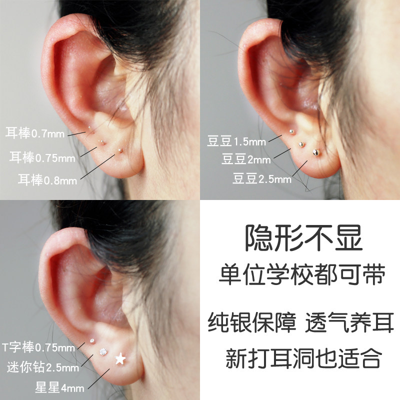 999 sterling silver ear stick ear hole anti-blocking needle sleep free silver female invisible anti-sensitive ear stick silver bean bean stud earrings