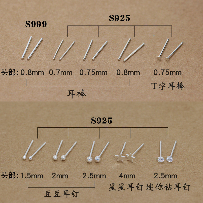 S925 Ear Rod(0 7mm) 15 S925 ear rod(0 75mm)10 S925 ear rod(0 8mm)10 S999 ear rod(0 8mm