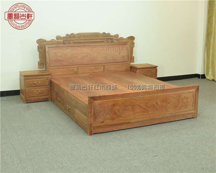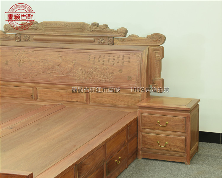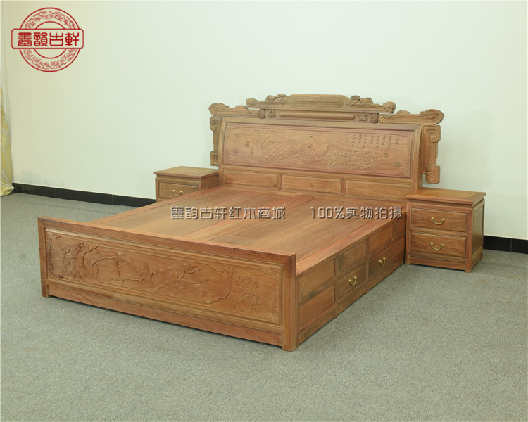 Burmese rosewood double bed mahogany peacock bed new Chinese style bedroom double bed solid wood master bedroom furniture