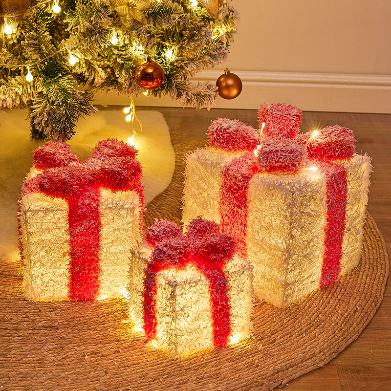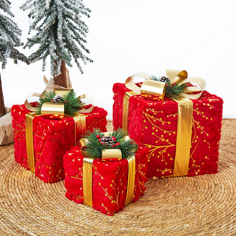 Christmas decoration Iron gift box three pieces of shopping mall Christmas tree decoration gift box scene