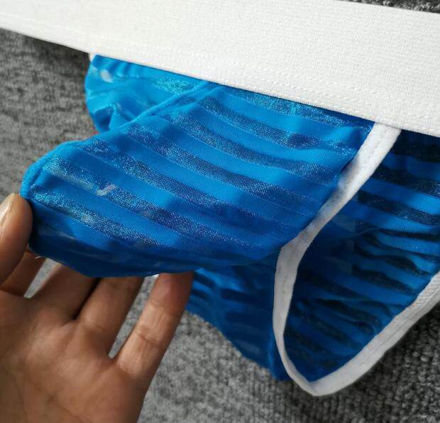 Striped Transparent Ice Silk Triangle Men's High Fork Briefs Big Bag Narrow Butt Sexy