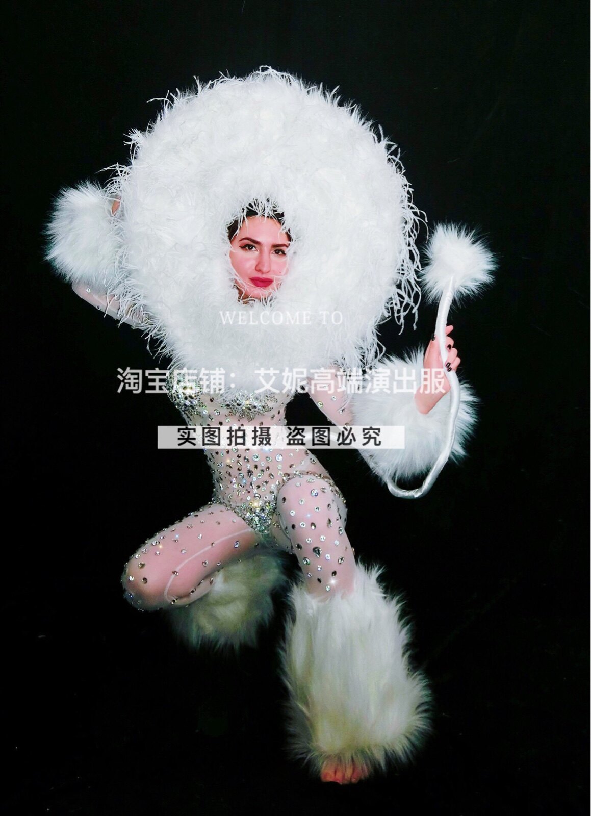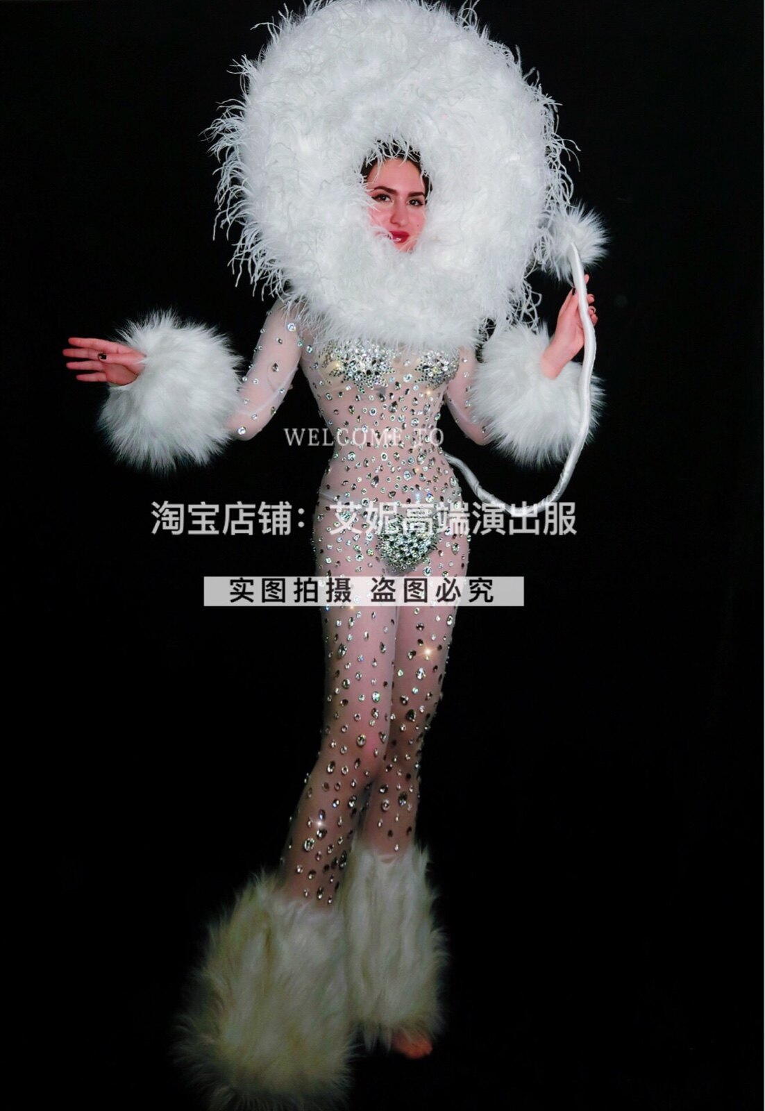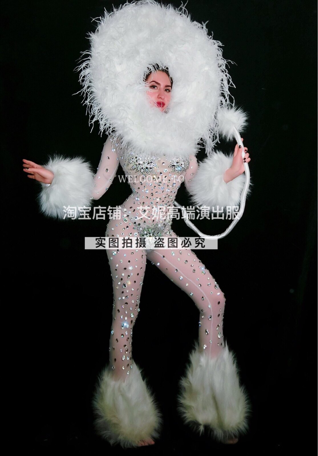 TT high-end nightclub bar singer djds dance team gogo halloween hairy full drill jumpsuit costumes