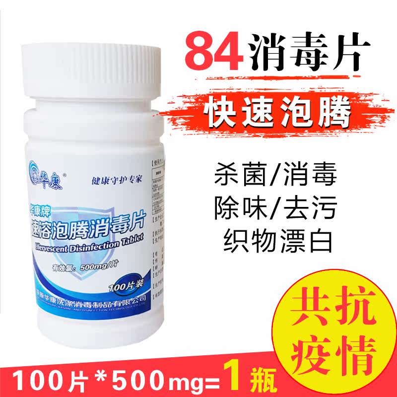 Huakang 84 disinfection tablets household disinfectant chlorine-containing foam tablets pet sterilization bleaching clothing 100 tablets * 1 bottle