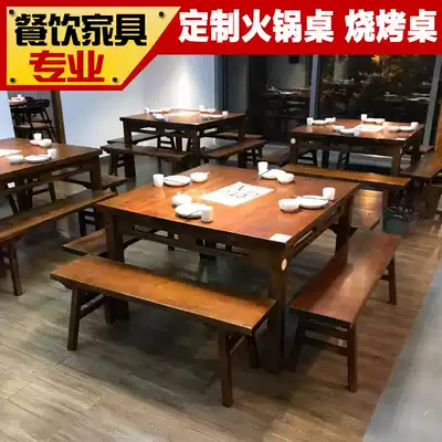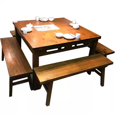 Solid wood four-person table Solid wood eight immortals table 15 meters round table Solid wood long stool Wrought iron Y chair Wrought iron circle chair
