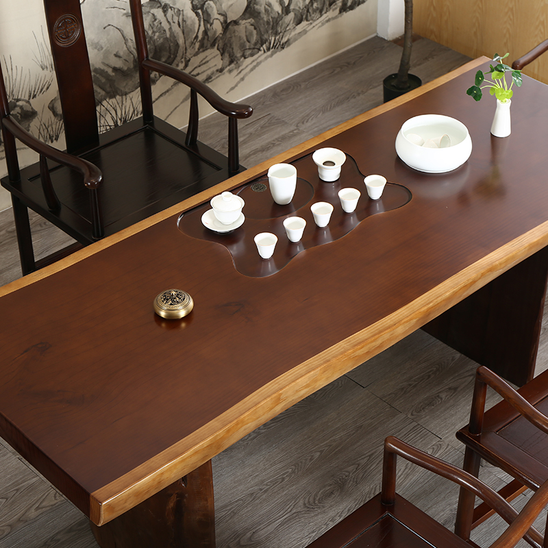 Tea table and chair combination office solid wood large board tea table new Chinese log tea table modern minimalist tea table