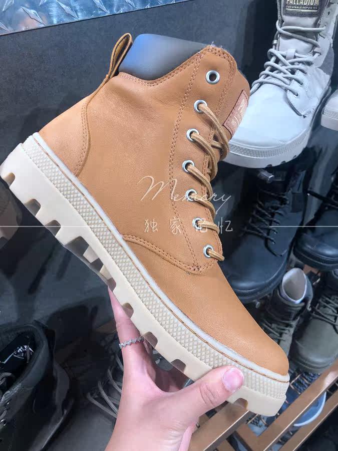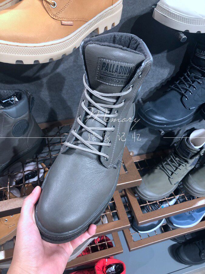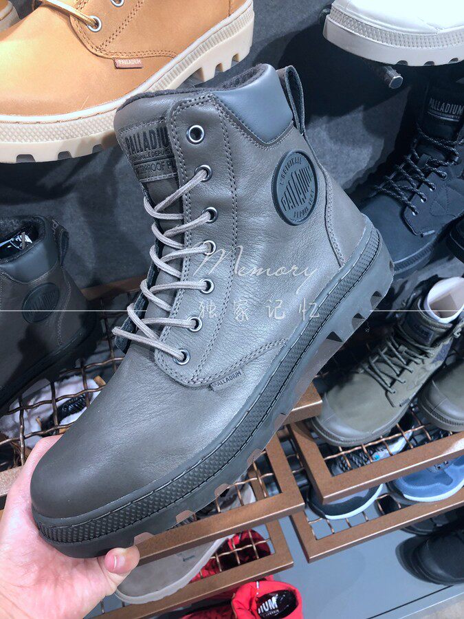 PALLADIUM Paladin men's high tube lace-up waterproof velvet warm casual leather shoes winter cotton shoes 05938