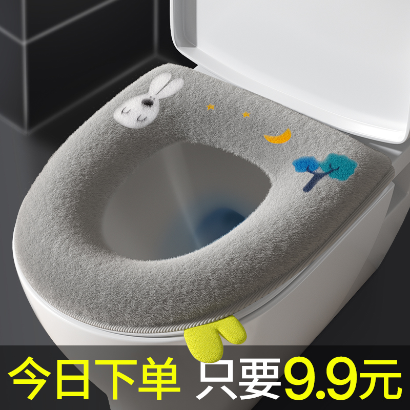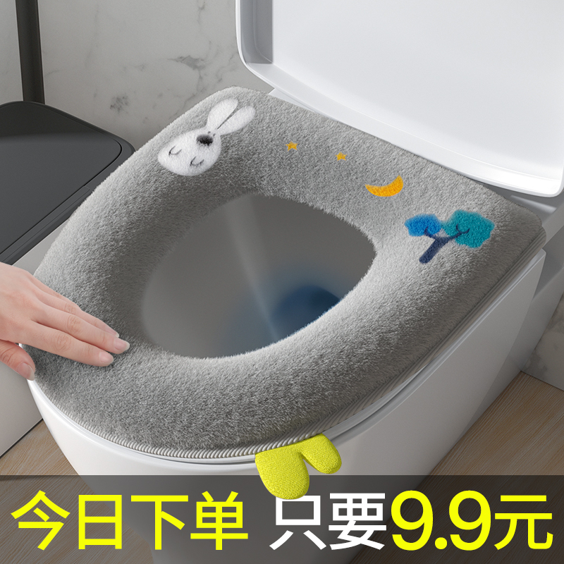 Toilet seat cushion Winter thickened home waterproof cute zipper style large seat cover gasket four seasons universal toilet mat