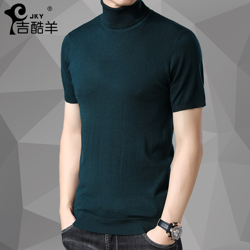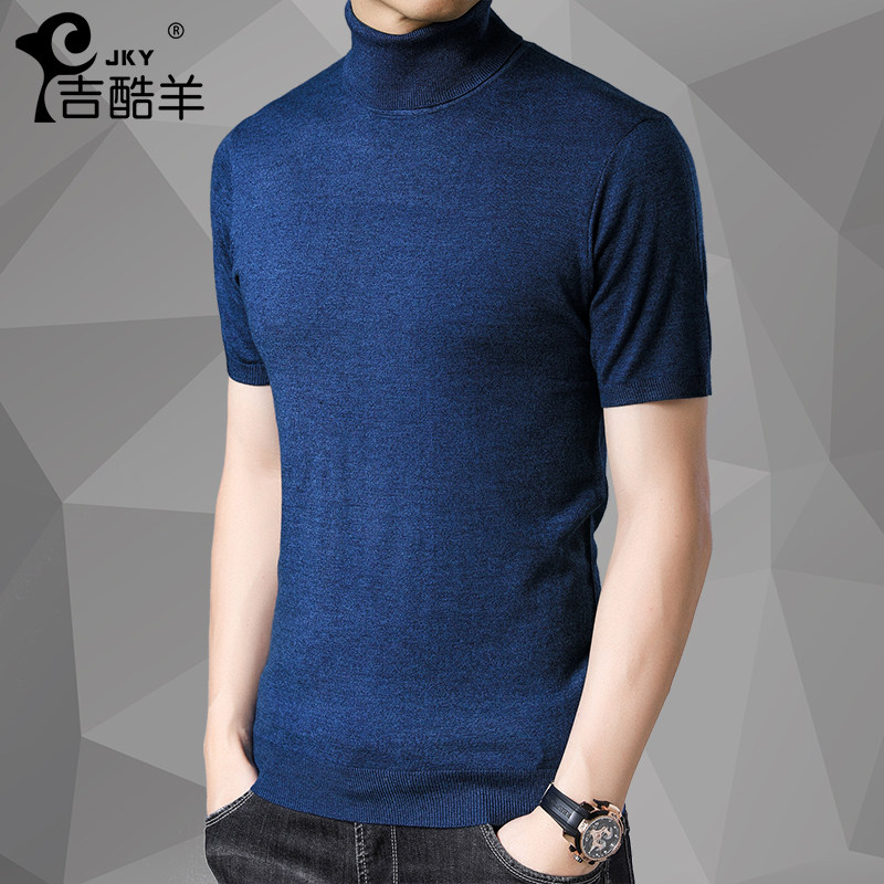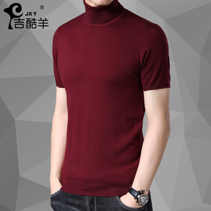 Short sleeve woolen sweater men's high collar spring and autumn men's black slim sweater half sleeve T-shirt sweater youth Korean wave